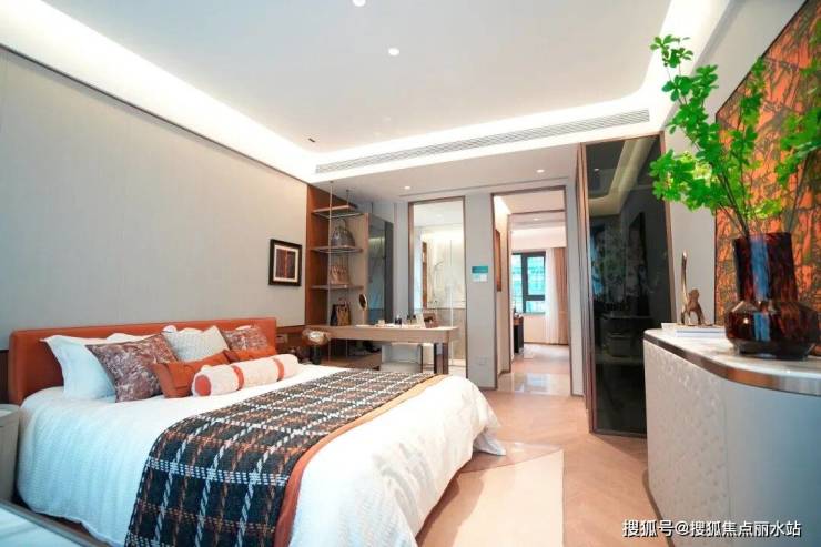 行政套房式主卧:餐客厅迈步向前,是主人的私属领地,步入式衣帽间,不仅满足了功能需求,更为业主创造多一分居住的幸福。