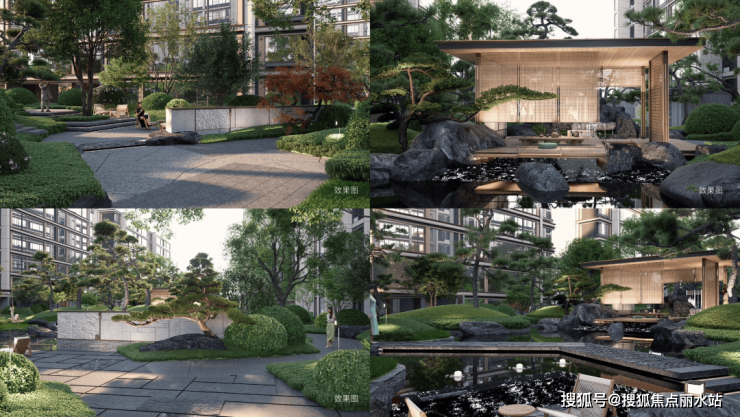 原址百年银杏、紫藤、常春油蔴藤、造型红枫、老桩银杏等,四时景色各异。