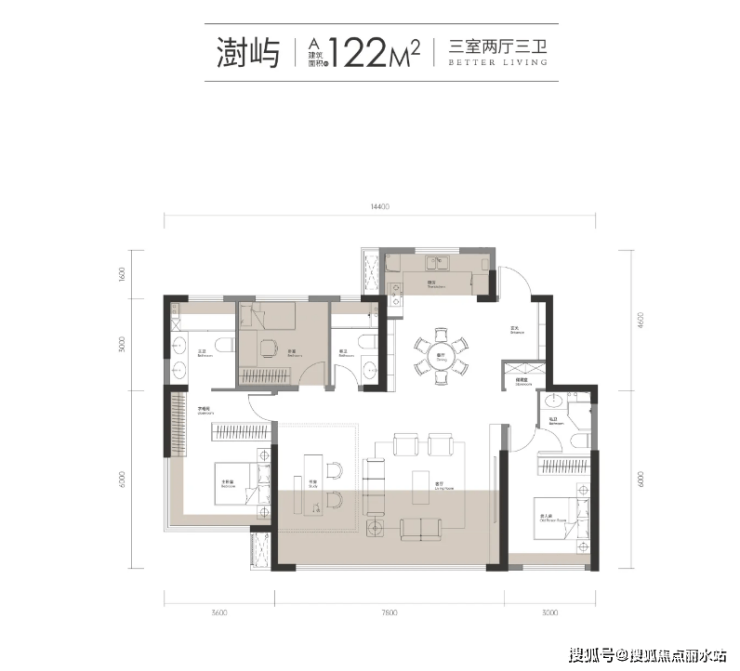 122㎡,双套卧+奢厅+四房+两厅两卫;