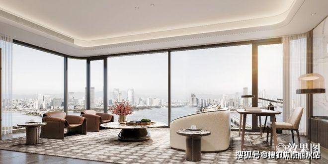 402席全江景住区:每户沿江面均配置全景落地Low-E玻璃幕墙,约7.4-9米的瞰江横厅、“双全景舱”等创新设计,实现270°无界江域视野。