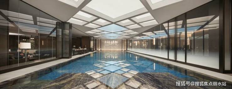 约1400㎡下沉式高奢会所,配备恒温泳池、健身房、瑜伽室等多功能空间,满足会客、运动、休闲等多元需求。