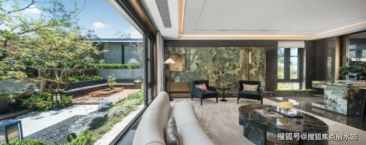 大多数人对花园和露台的向往,不仅仅是空间的扩容,更是渴望一方有天有地的私域。约240㎡下叠以U型围合式三重园境,承载多元意趣园景。