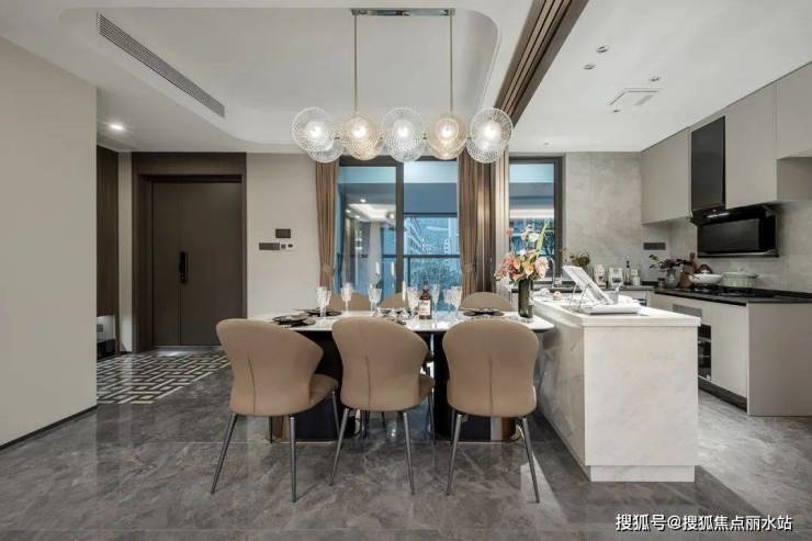 公区一体化 却又各得其所,大客厅、大厨房、大餐区,构成近60㎡的「超极方厅」。