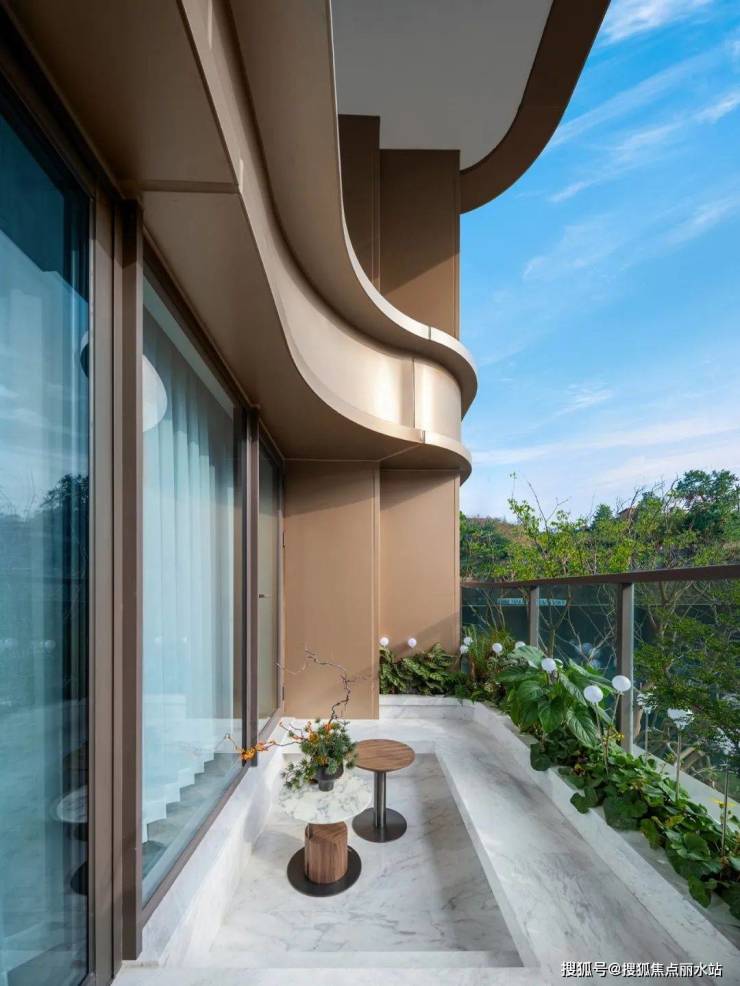 大量弧线在楼体上温润流转,弧面阳台交错为立面注入韵律和生机。