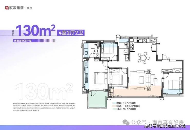 130㎡标准四房,三卧朝南+大横厅,空间设计思路和河西170㎡左右的产品类似。