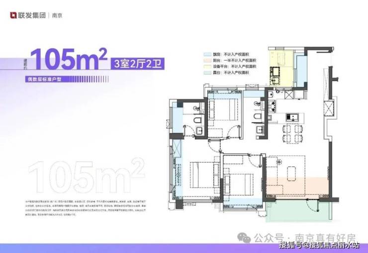 105㎡偶数层户型,这个面积段很多盘都有,相比较非四代宅产品,差异主要在这三点: