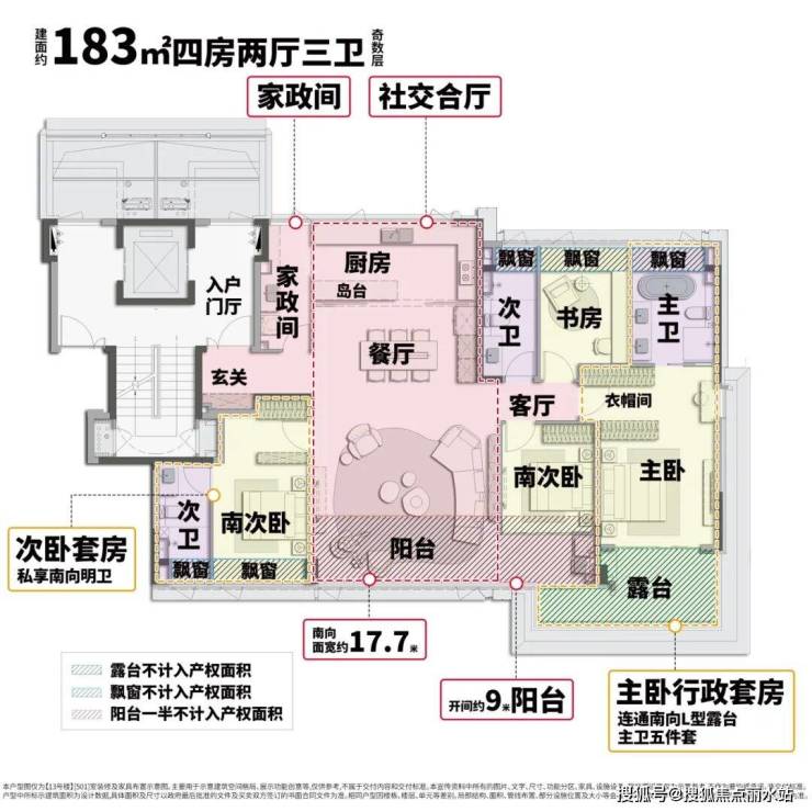 建面约183㎡四房两厅三卫,我愿称之为“奢享四房”。