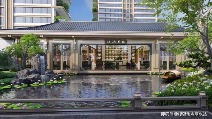社区内部以稷下学宫为灵感源泉,采用"十"字布局构建一轴六境三重礼序空间,山水庭院成为景观核心,漫步其中,仿佛穿越千年,与古人共赏四时之美。