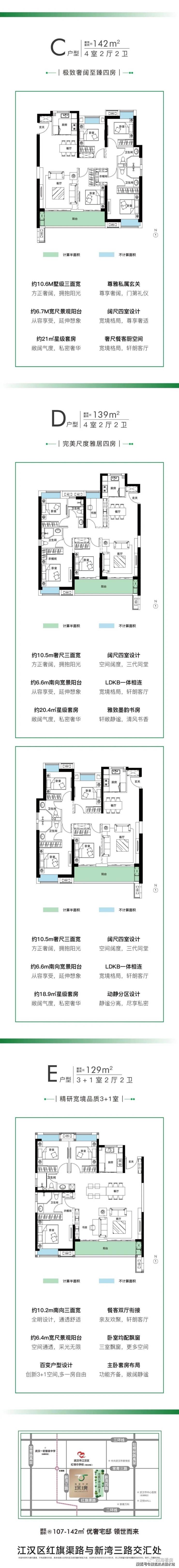 户型:107-142m²全能三/四房