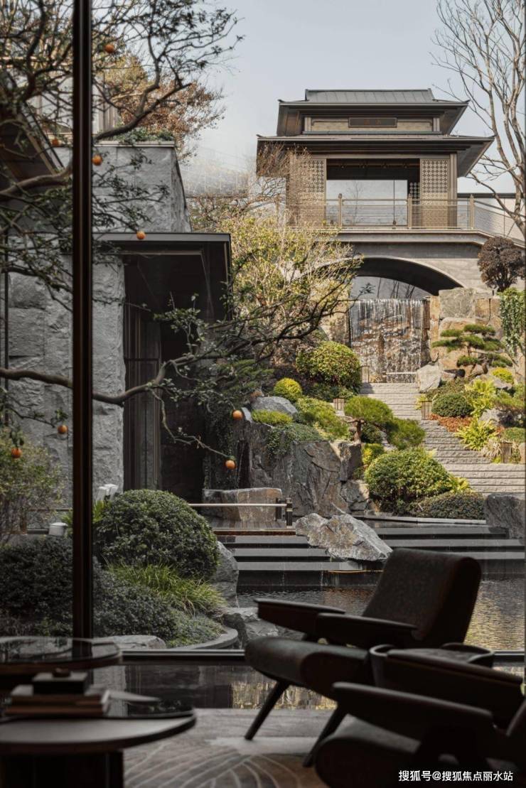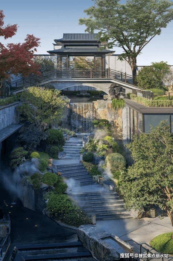 排屋采用伊朗奢石外立面,高层配下沉式庭院