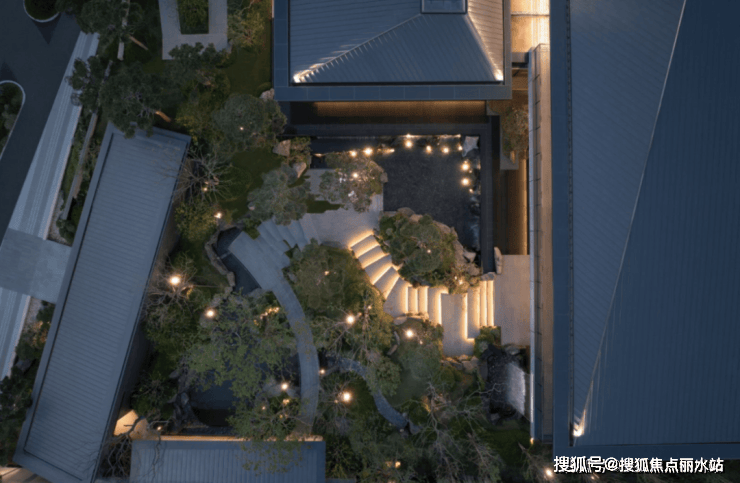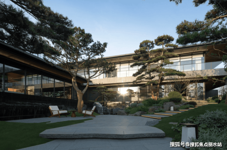 园林景观:承袭千年宋风礼制,以《千里江山图》为蓝本,打造宋风山水庭院,山、石、水、林、瀑、松、径、廊等元素处处彰显宋式美学的轻盈雅致。园区内 18 棵高大挺拔的油松,以及乌桕、红枫等中式意境植物,营造出一步一景的诗意氛围。
