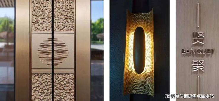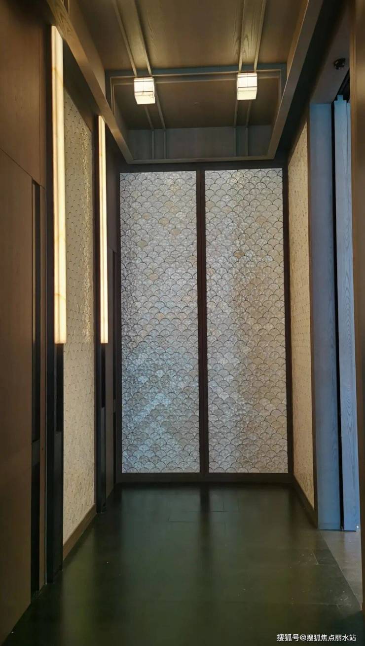 玻璃门上的金属门把手、壁灯都是手工定制,项目能总结出10重手工定制工艺。