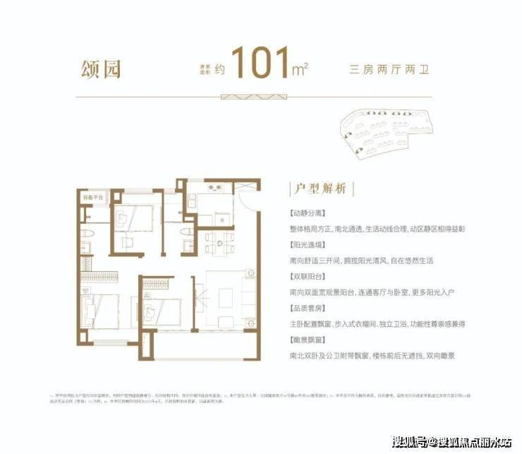在101㎡三房两厅两卫户型中,除了完美继承89㎡户型高利用率、大飘窗等优势外,还增加了独立玄关和玄关收纳,主卧设计独立卫生间,居住体验更上一层楼。