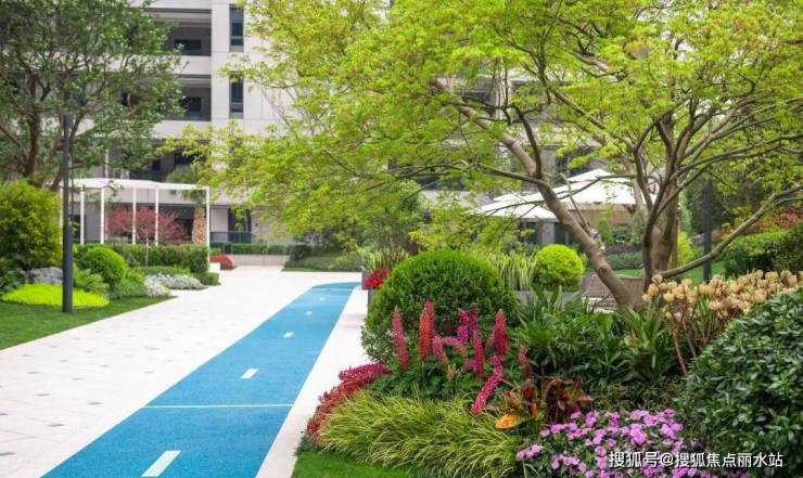 设计利用景观树阵、规则草坪、模纹花坛、水景雕塑等,打造自由式的景观布局,灌木和小乔木、花卉植物组合,拥有丰富的颜色层次,局部摆放雕塑小品增加活泼的社区氛围,形成开合有序的景观空间。