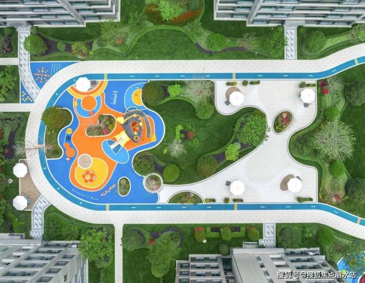 园区内设置两处极具主题性、阶段性的儿童游乐区,选用亮眼的色彩和趣味性线条融合进环境中,选用多种游乐设施组合,让孩子们自由奔跑、攀爬等,无拘束的释放孩童天性。