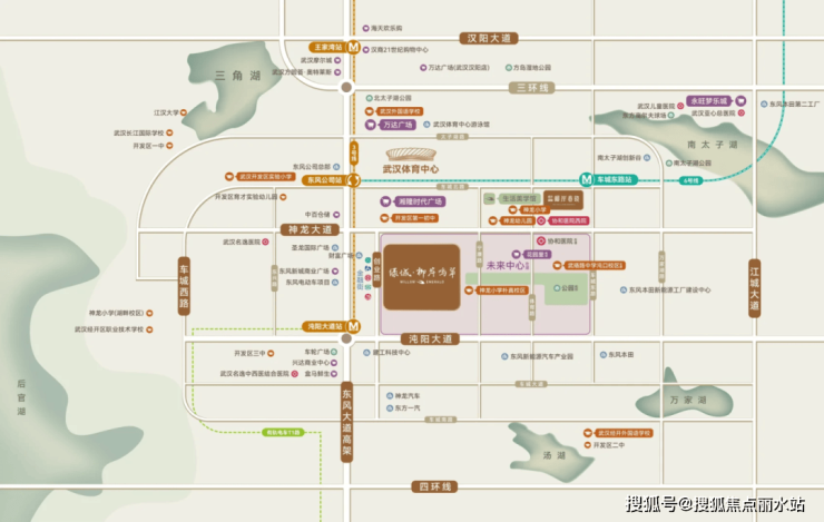自驾方面,项目周边有神龙大道、沌阳大道、东风大道及高架等主干道和快速路,均可连接三环、杨泗港快速通道等快速路,东风大道高架、江城大道(三环内)均为城市快速路。