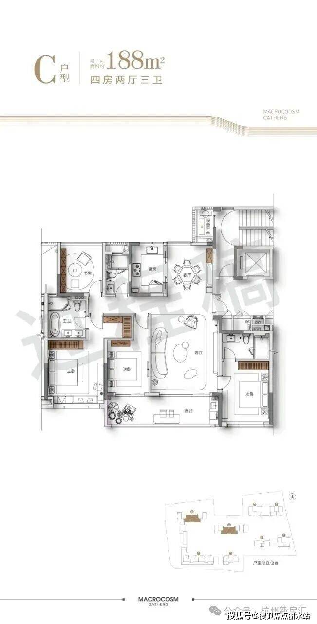 建筑面积188㎡4室2厅3卫,方正格局,空间规整。餐厨系统升级,配置约3.3m超长操作台;通透餐厅。双主卧套房配置;书房可改造为亲子活动室或影音房。整体尺度奢阔,适合改善家庭。