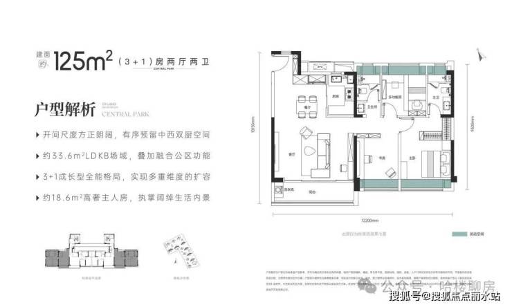 约33.6㎡LDKB一体化聚厅/预留中西双厨岛台/约18.6㎡高奢主卧套房