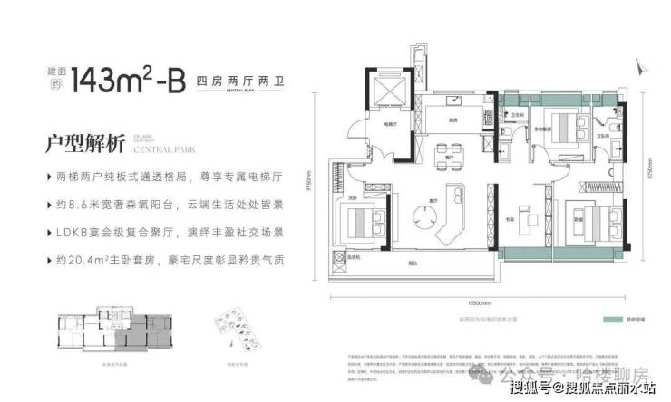 两梯两户专属电梯前室/约8.6m阳台/LDKB一体化宴会厅/约20.4㎡多功能主卧套房