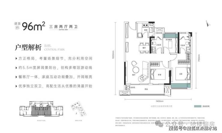 约5.5m宽景阳台/干湿分离双卫/多功能套房主卧