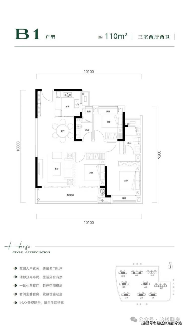 建筑面积约110㎡三室两厅两卫 超强性能随心所享