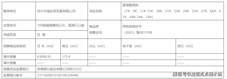 近日,柯桥区人民政府网站发布了鉴湖雅颂府7#、9#、11#-15#、18#、21#、22#、24#、25#、27#、66#、67#、69#-74#、76#的预售许可公告。
