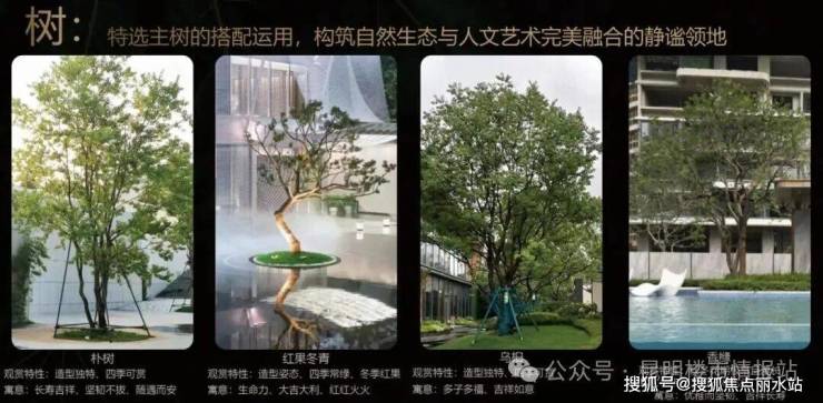 项目在园林景观、建筑设计打造中,精选古桩乌桕、百年朴树、特级红果冬青等具有生命底蕴的珍贵树种,并引入普拉达绿、安哥拉黑、幻影蓝、印度大花绿、幻彩麻等全球珍稀石材。将自然与时光淬炼的臻材,融入“都市雨林”的主题意境之中。同频峯层向往,回应时代期盼。