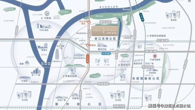 两路两轨,无界都会。身居城央,两路两轨通达四方:沿通途路西达三江口,东达接海曙;沿中兴路南达鄞南核心区域,北达文创港片区。