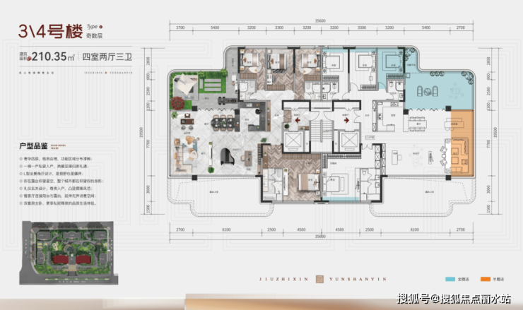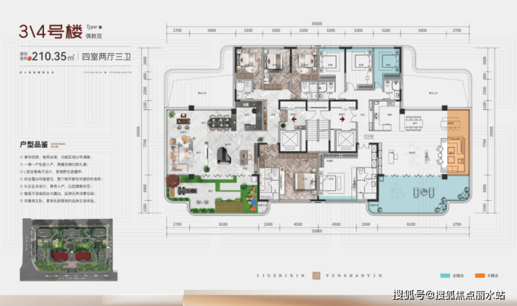 在户型设计方面,久智信·云山印提供了251套大平层、大花园改善型住宅产品。户型设计注重采光和通风效果,通过合理的窗户布局和建筑朝向设计,让每个房间都能享受到充足的阳光和新鲜的空气。同时,户型设计还注重空间的灵活性和可扩展性,为居民提供了多种改造和升级的可能性。部分户型还赠送了超大花园露台及阳台,外接巨幕式景观阳台,享270°视野范围,进一步提升了居住的舒适度和品质感。