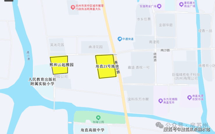 该地块位于甪直镇甫澄路西侧、南沙路南侧,就在城投新盘熙和云起雅园东侧;