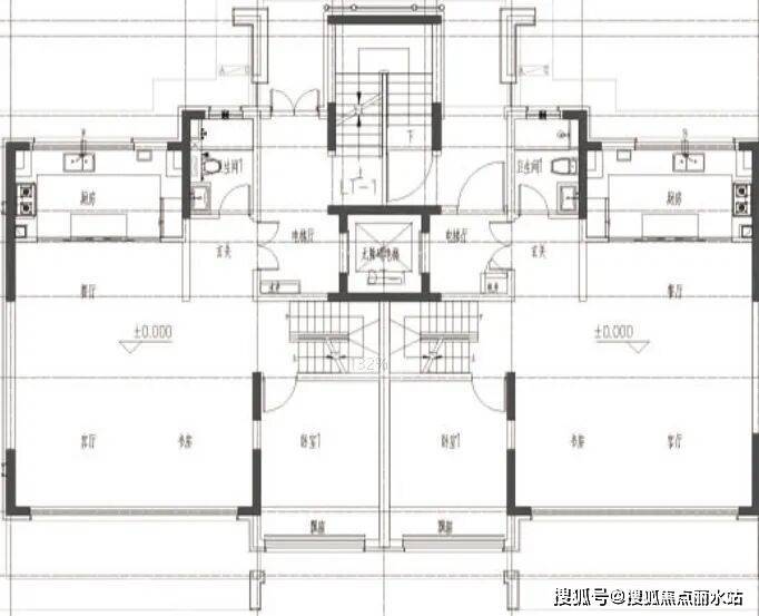 叠墅两梯四户设计,电梯双开,相当于一梯一户;