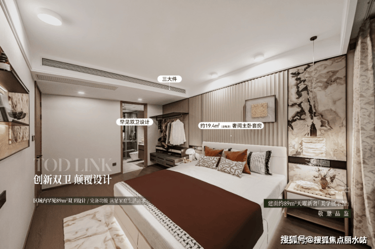 谁说小户型就是蜗居?得益于高赠送, 89㎡三房拥有19.4㎡的宽敞主卧,且为女主人预留独立卫生间,这在南京90㎡以内三房产品中实属难得。