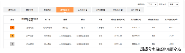 成交面积、成交套数、成交总金额:均位列江北第一,总金额唯一破2.5亿!领先优势显著。(数据来源:网尚数据库)