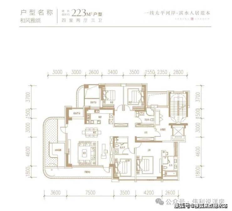 J户型:和风雅颂,建面约223㎡,四室两厅三卫