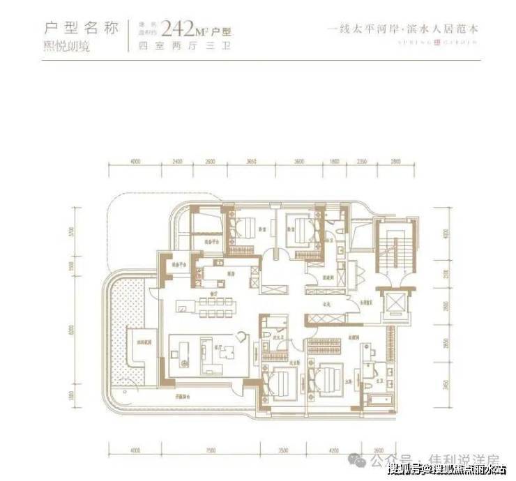 H户型:熙悦朗境,建面约242㎡,四室两厅三卫