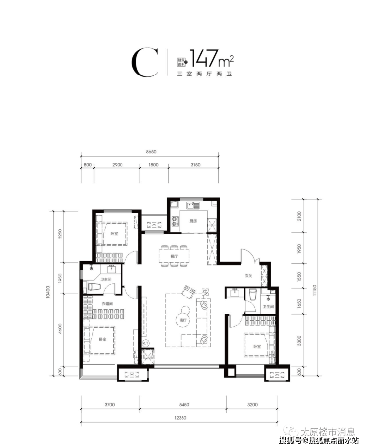 太原长风金茂悦项目的户型亮点,有着大宽厅,南侧为落地窗,每个户型有大开间,南北有短进深,