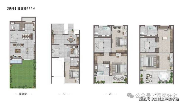 【产品面积】:上叠200-220平,下叠180平,联排260平