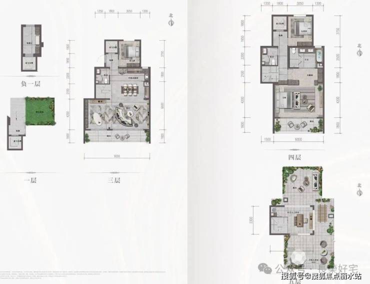 【层高】:下叠负一3.3米,1层和2层均3.1米,上叠1层3.3米,2层3.1米,阳光房2.6米