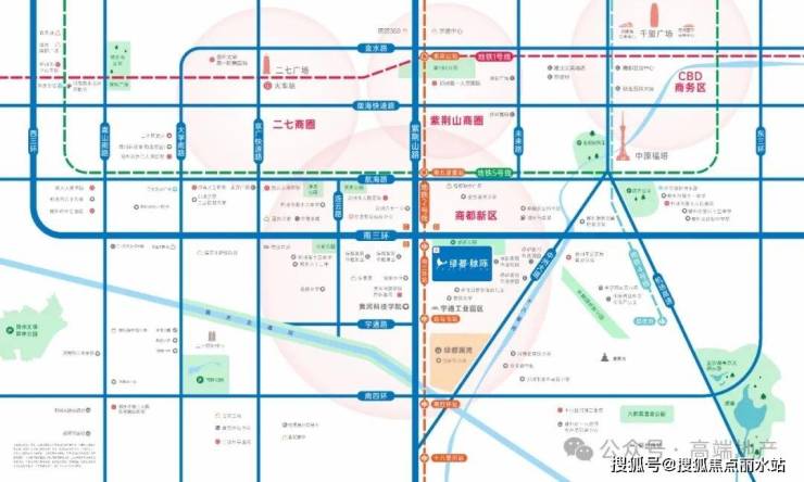 城市干道:南三环与紫荆山南路双轴交会处,中州大道、京广快速路、郑新快速路、机场高速等多驱并联,持续导入澎湃人潮