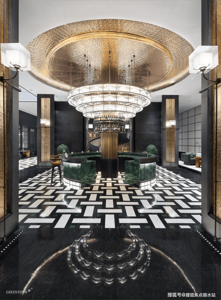 以横向舒展檐口让建筑更加轻盈灵动,更大窗墙比设计,将远景近水引入室内,温暖质感的白金立面配色搭配现代东方构件,织锦一幅华贵东方的美学封面。