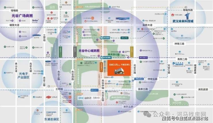 1、光谷中心城正核心:万和竞界在光谷中心城的地段非常核心,位于光谷五路和光谷六路之间,近高新大道,是整个光谷中心城交通、商业、公园、产业最集中的板块。