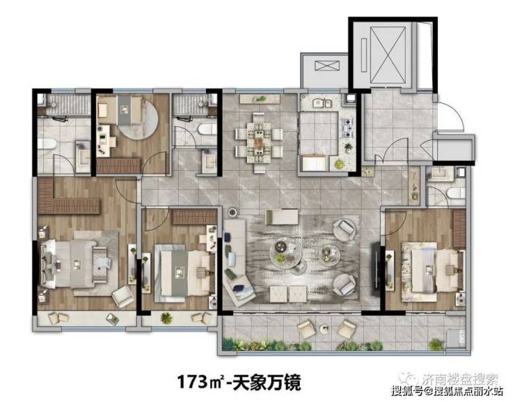 2#楼为18层小高层,2个单元,两梯两户,户型面积为143平、173平。