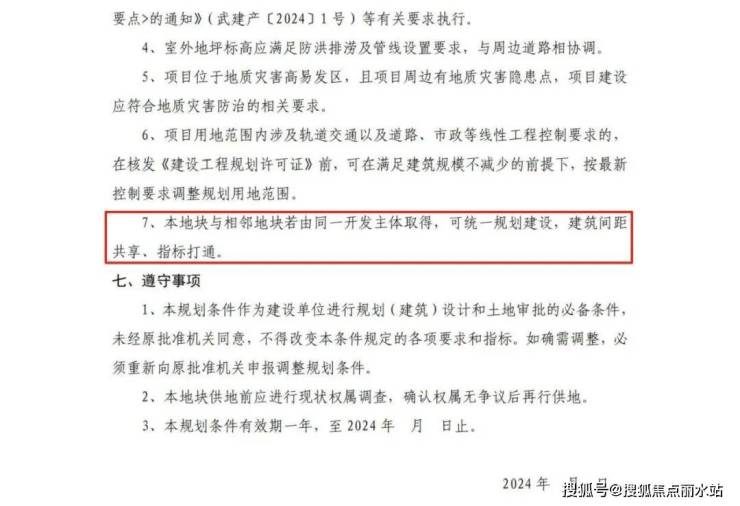 “本地块与相邻地块若由同一开发主体取得,可统一规划建设,建筑间距共享、指标打通”,