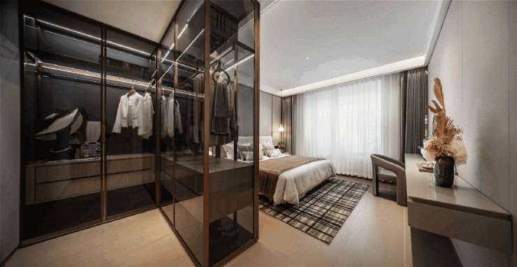 在打造了超大公区后,并没有挤压其他卧室空间,主卧套房尺度豪横,步入式衣帽间,配备独立私密卫浴空间,带来媲美五星级酒店的奢适享受。