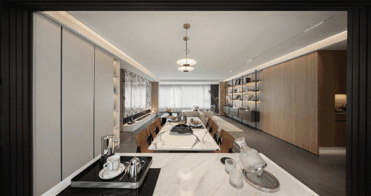 LDKG一体化的设计,实现了大家族聚餐和聚会需要的空间,更核心的是以人为本,未来整个公共空间将构成一个家庭完整的情感交流场所。