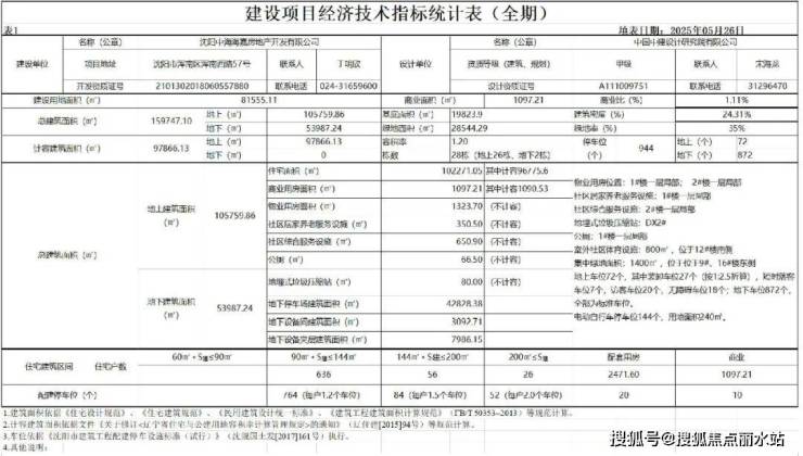 从公示的建设项目经济技术指标统计表(全期)来看: