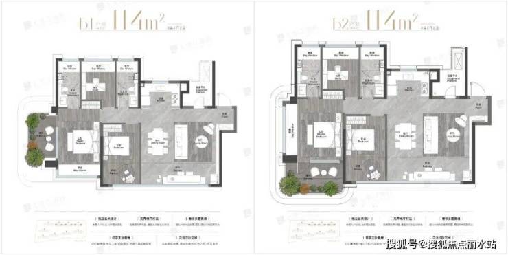 项目有多种户型,102平米三房户型起步,户户有露台,空间利用率超100%。