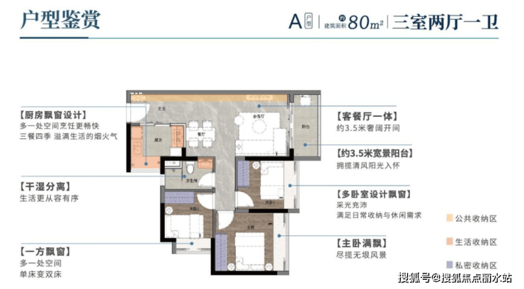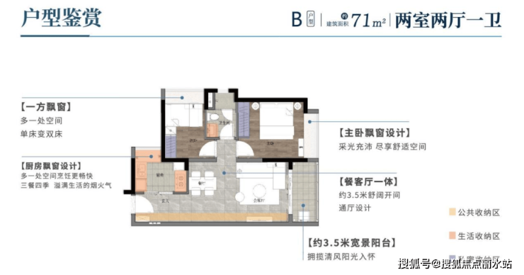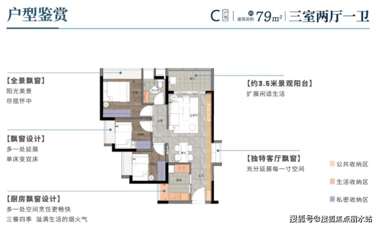 户型设计方面为2梯6户设计,共有三种户型,分别为71㎡两室两厅一卫、79㎡三室两厅一卫、80㎡三室两厅一卫,精装交付,省时省力。