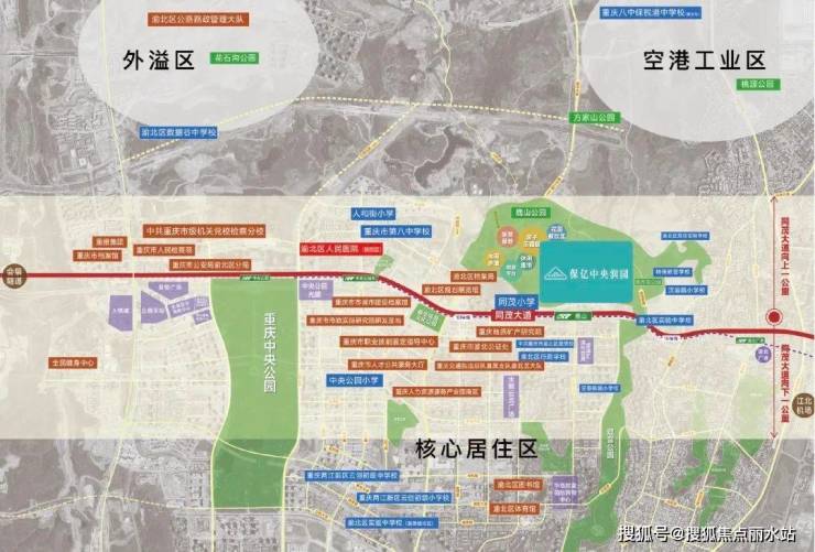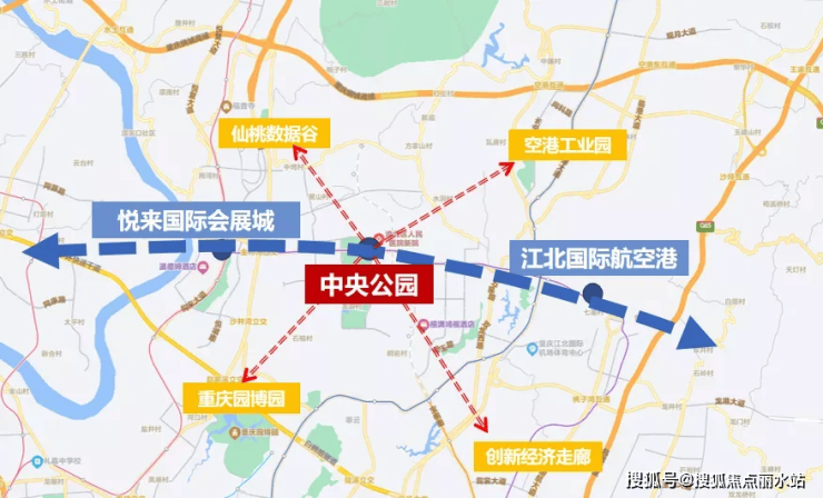 中央公园联动江北国际航空港、悦来国际会展城、仙桃国际数据谷、空港工业园、创新经济走廊等板块一体发展,打造出以绿色为底、文化为韵、活力生产、宜居生活的城市新中心,在重庆向北的持续发展进程中强势引领区域崛起。