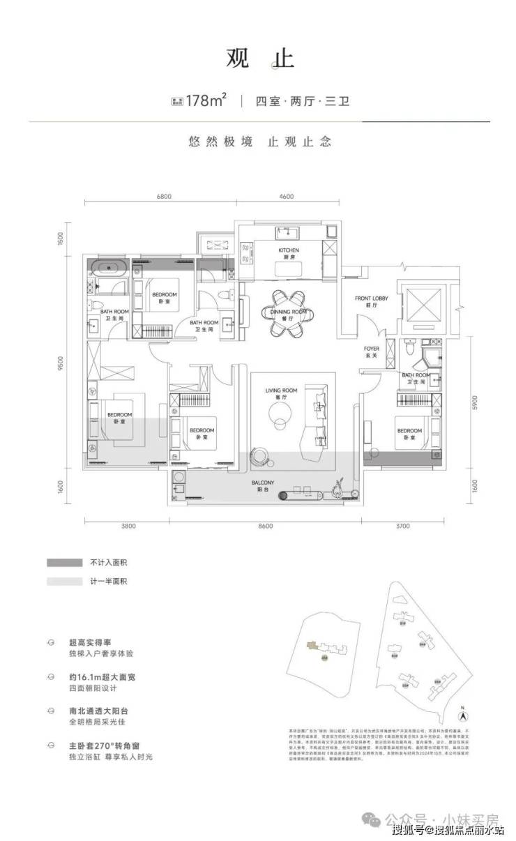 ④项目户型设计优秀,作为准四代住宅,项目优化后得房率约94%,且拥有独梯入户、四面宽朝南等户型亮点。